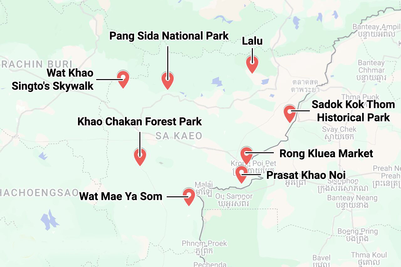 At the Thai border in Amphoe Aranyaprathet, Sa Kaeo serves as a gateway to Cambodia, connecting international commercial transport and tourism at a hectic border crossing. As a result of the massive influx of goods and people passing back and forth, Rong Kluea Market offers both cheap and second-hand products from the two neighbouring countries.